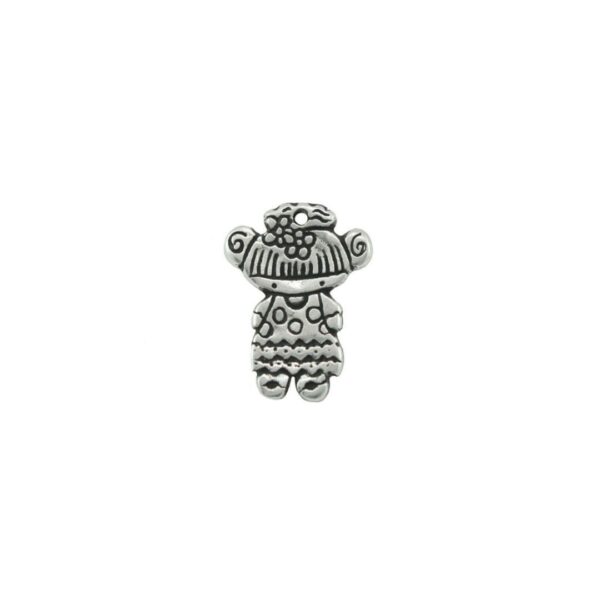 Colgante niña Lolita flamenca de 21x19mm de Zamak bañado en plata.