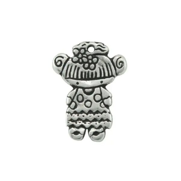 Colgante niña Lolita flamenca de 38mm de Zamak bañado en plata.