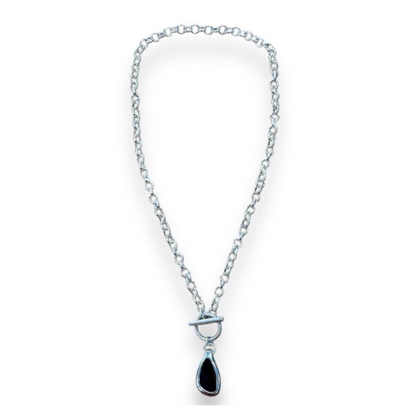 El collar Crisla mide 50cm por lo que queda a una altura entre el cuello y el busto.