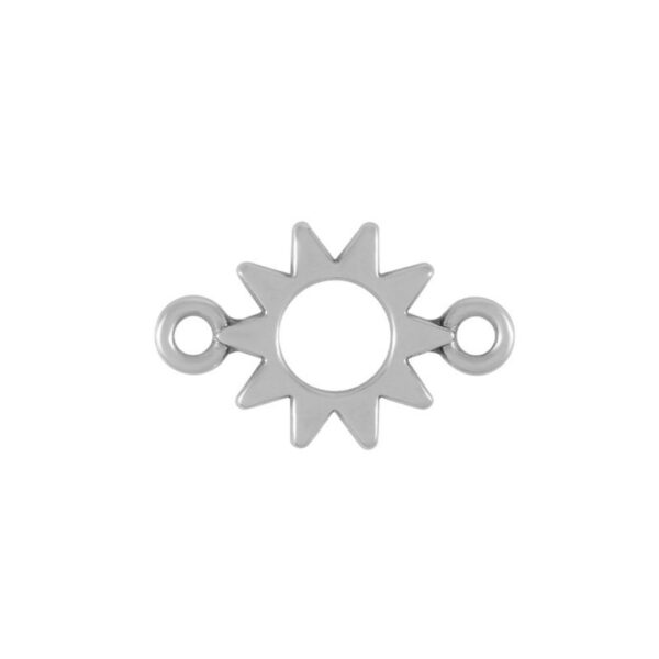 Su doble aro permite una conexión fácil y segura, sirviendo como pieza central en pulseras, separador en collares o un encantador detalle en pendientes. Su diseño estilizado y minimalista, con un círculo central y rayos delicados, es perfecto para añadir un punto de brillo a pulseras, collares y pendientes.