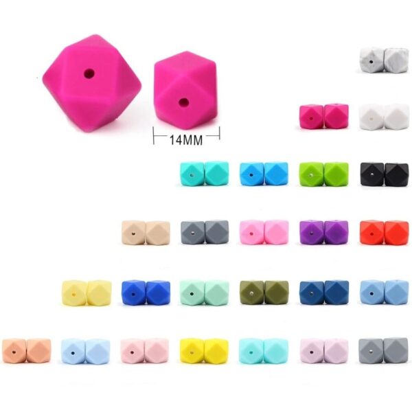 Abalorio de silicona en forma de hexágono para chupetero y para la dentición de los bebés de 14mm.