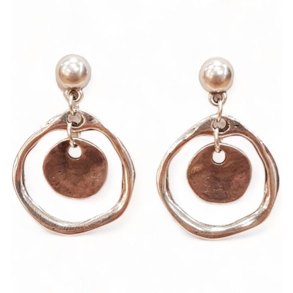 Pendientes con aro martilleado de 24mm y medalla irregular.